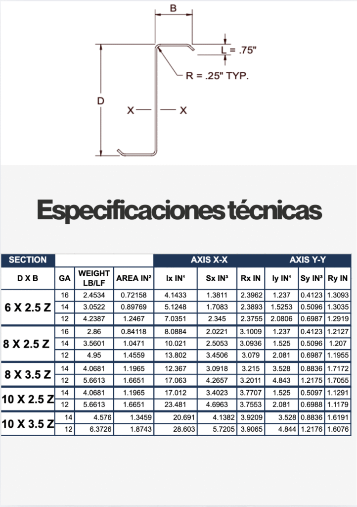 El Polín tipo Z es un perfil metálico fabricado en acero galvanizado o negro, diseñado principalmente como soporte estructural en techos. Su geometría en forma de “Z” permite una mayor eficiencia estructural, optimizando su capacidad de carga.